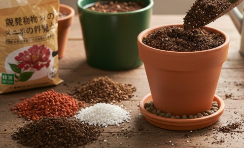 | 室内向き清潔配合 | 赤玉土小粒5:ピートモス3:パーライト2 | 軽量で清潔感があり、室内管理に適しています。 |