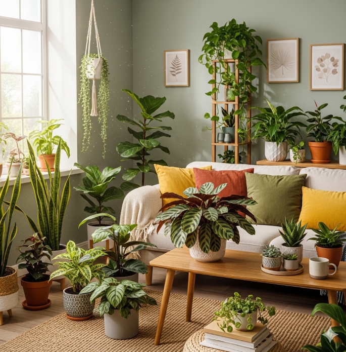 カラテアの風水効果は、リビングや寝室でも効果を発揮します。人が最も集まるリビングにカラテアを置くことで、その丸い葉が発する穏やかな「気」が、空間全体にリラックス効果をもたらしてくれます。これにより、家族やパートナーとの人間関係が円滑になる効果も期待できるでしょう。