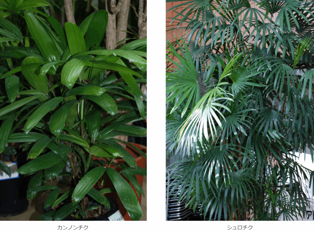 - ✅ シュロチク:葉が細長く切れ込みが多くて深い(シャープな印象)