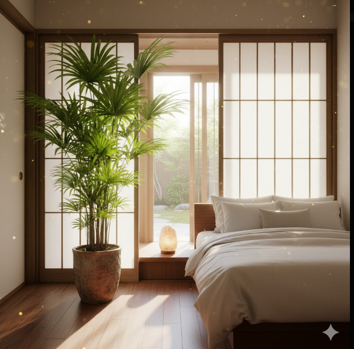 寝室は、私たちが眠っている間に運気を取り込み、貯める場所です。「陰の気」を持つシュロチクを置くことで、より深いリラックス効果が得られ、自分の気を整えることができます。ただし、寝ている真上や頭元に置くのは避け、少し離れた場所に配置しましょう。