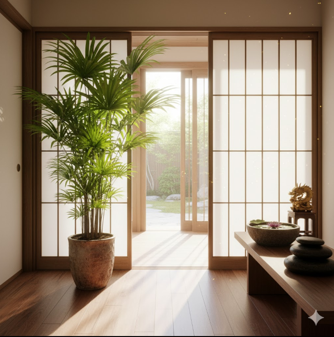 玄関は、家の運気を決める大切な入り口です。ここにシュロチクを置くことで、悪い気の侵入を防ぎながら、良い出会い運を呼び込みます。また、シュロチクは比較的耐陰性が強いため、日光があまり当たらない玄関でも育てやすいという点も大きなメリットです。常に清潔に保ち、良い気を迎え入れましょう。